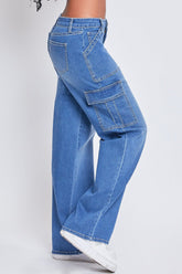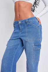 Dare to denim in our Women’s Low Rise Relaxed Cargo Jeans. This low-waisted jean features a relaxed fit for a cool look and comfortable feel you’ll love. Styled with a five-pocket construction with rectangular front pockets and flap cargo pockets at the side. These classic denim pants are detailed with a zip fly with single button closure and belt loops. Wear with your favorite graphic tee and tennis shoes for a street-smart look that’s sure to get you compliments!