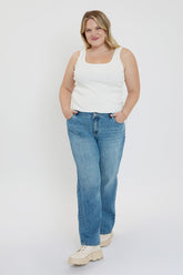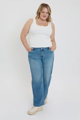 Step into effortless style with the Women’s Plus Brittany Low Rise Wide Leg Jeans. Designed for comfort and a flattering fit, these jeans feature a low-rise waist and a relaxed wide-leg fit that offers a laid-back look. Perfect for pairing with everything from fitted tops to flowy blouses, these jeans can take you from casual days to night outs with ease. The versatile design make them a staple for any season.