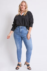 Women's Plus High Rise Basic 5 Pocket Skinny Jeans from Royalty For Me, where timeless style meets ultimate comfort. Designed for the modern woman, these jeans offer a flattering high-rise silhouette paired with a sleek skinny fit, perfect for everyday wear.