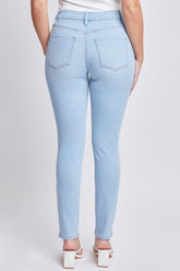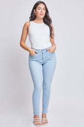 Denim doesn't get better than with our Women's Sustainable High Rise Skinny Jeans. Crafted with midweight stretchy denim, these mid-waisted jeans feature a flattering silhouette that is fitted hip to hem. Constructed with our contouring design to perfectly sculpt, hold, and lift in all the right places, and built-in tummy control panels at the waistline. Detailed with a classic five-pocket construction and a zip fly with single button closure. Style with a loose-fit blouse and heels for a dressier feel, or pair with your favorite tee and sneakers for a casual look.