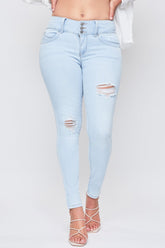 A favorite for a reason! Our Women’s WannaBettaButt 3-Button Mid-Rise Skinny Jean Sustainable features our signature heart-shaped stitching and unique pocket shape that enhances your natural curves and gives your bum a lifted look. Featuring trendy detailing such as a 3-button fly and light distressing. Made in a mid-rise for a comfortable fit. Pair these with a light sweater and booties for an easy, chic look!
