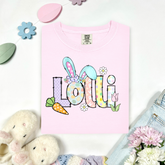 Our Easter-themed custom name graphic tees are here, and the options are UNLIMITED! We can do kids' names, grandma names, professions—whatever you want!