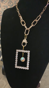 Turn every outfit into a statement with this dazzling necklace. The chunky gold link chain leads to a rhinestone-framed square pendant, spotlighting a rainbow crystal that shimmers with every move. It’s bold, modern, and just the right amount of glam.