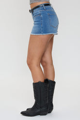 Designed with classic 5-pocket styling and a button-and-zipper fly, they’re finished with a removable belt featuring a heart-shaped buckle for that extra sweet touch. Crafted from a soft stretch denim blend, these shorts are made to move with you while keeping their shape. Style with a baby tee or tank for effortless, cool-girl energy.