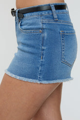 Women's Low Rise Belted Fray Hem Shorts