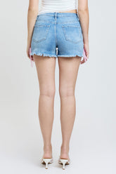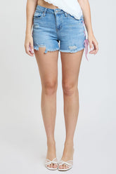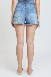 Add a bold twist to your summer look with these Women’s Luxe High Rise Shorts featuring lace-up side seam details. Designed with a classic 5-pocket layout, fray hem, and distressed accents, they deliver an effortlessly edgy vibe. Made from a premium fabric blend, these shorts offer the structured, rigid feel of traditional denim with just a touch of stretch for all-day comfort. The high-rise fit flatters your shape, making them a go-to choice for laid-back days or nights out.