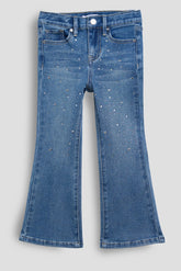 Add a little sparkle to her step with our Baby Girls Rhinestone Flare Jeans! Designed with a cute flare leg and glittering rhinestone accents, these jeans bring a fun, glam twist to her everyday outfits. Perfect for playdates, parties, and picture-perfect moments, they combine comfort with an extra dose of shine.