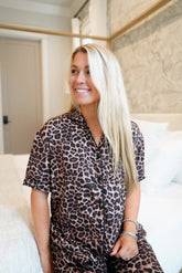 • Short sleeve sleep Top: Notched Collar, Front Button Closure, Short Sleeves