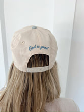 • "God is good" embroidered on the back above adjustable snap