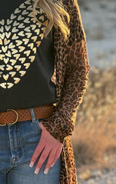 Tiny hearts covered in gold foil in the shape of a heart makes this a classic tee to wear anytime! Too cute to pass up!