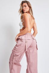 Add style, comfort, and versatility to your pant collection with our women’s elastic waist cargo pants. This relaxed-fit cargo pant is constructed with lightweight cotton fabric for maximum comfort and versatility. Our cargo pants for women have a relaxed leg, baggy fit from hip to hem, and are full-length with a drawstring hem for an option to wear open or tied for a cinched ankle. Detailed with two classic side patch front pockets, and two ring closure front and back pockets these cargo pants are both functional and trend-setting. Featuring an elastic button closure waist and a relaxed fit that makes the fit customizable to your liking that ensures comfort and style these cargo pants will be your go-to choice for all-day wear.