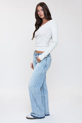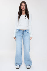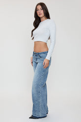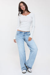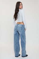 Add a bold touch to your denim collection with these Women’s Low Rise Patchwork Wide Leg Jeans. Featuring unique patchwork distressing, they bring a stylish edge to a classic straight leg fit. Designed with a low rise for a modern look, these jeans include belt loops and a button and zipper fly for easy wear.