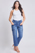 Get things done in our Women’s Mid-Rise Cargo Pants. This waisted denim pant features stylish front pockets, standard back pockets, at cargo pockets at the side with snap button closures. Detailed with contrast stitching and a vertical front seam that draws the eye to create the illusion of a longer leg.