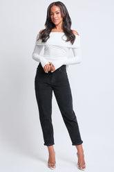 Rock these mom fit pants for a comfortable and trendy look. Our Women's Corduroy 1 Button High Rise Mom Fit Pants feature a high-rise fit, classic five-pocket construction, single-button closure with front zip, and belt loops.