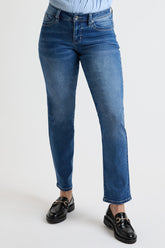 Enhance your natural shape with the Women's WannaBettaButt Straight Leg Jeans. Featuring a heart-shaped yoke on the back, these jeans are designed to accentuate and lift your curves for a flattering fit. The straight leg cut offers a balanced silhouette, providing a comfortable yet stylish option that pairs well with any top. Made from soft, stretch denim, these jeans offer both flexibility and all-day comfort, making them a versatile addition to your closet for any occasion.