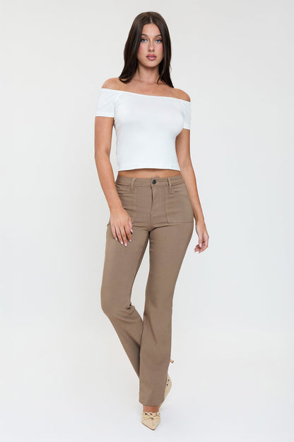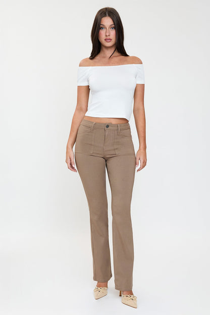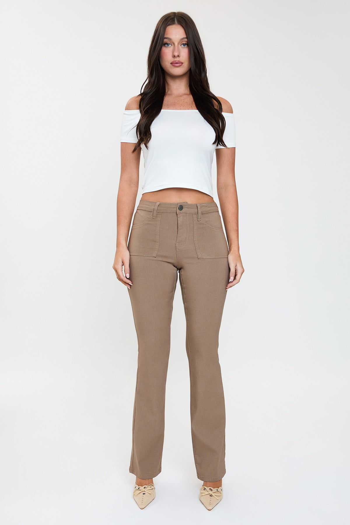 Women's Hyperstretch Mid Rise Bootcut Pants — fit to contour your body and give you a curvy silhouette, all while making you look amazing! With specially constructed Hyperstretch fabric, this pant is extremely comfortable, flexible and one of a kind! Complete with two porkchop front pockets and two functional back pockets. Bootcut pants are known for their classic and versatile style, as they can be worn with various types of footwear, including boots.