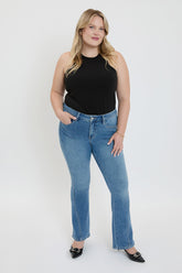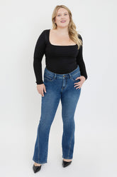 The flare leg balances the look for a timeless, elongating effect, while classic 5-pocket styling, belt loops, and a secure button-and-zipper closure complete the design. Made from a soft, stretch-infused blend, these jeans move with you—making them perfect for all-day wear. Dress them up or down for effortlessly chic style.