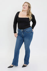Sculpted for style and built for comfort, the Women’s Plus Curve Seam Flare Jeans bring a fresh twist to your denim rotation. Featuring a flattering mid-rise fit and a standout curved front seam, these jeans enhance your silhouette while adding just the right amount of edge.