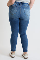 Women's High Rise Curve Confidence WannaBettaButt Skinny Jeans are the perfect fusion of style, comfort, and confidence. These jeans feature a high-rise waist and a skinny fit, designed to hug your curves and create a sleek, flattering silhouette. These skinny butt lifting jeans feature our signature WannaBettaButt heart-shaped stitching and uniquely made pockets for a natural butt-lift that you'll love.