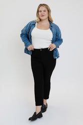 Sleek, comfortable, and made to move with you—the Women’s Plus High Rise Hyperstretch Cropped Straight Pants are your new go-to for everyday style. Designed with a high-rise fit and ultra-stretch fabric, these non-denim pants offer a smooth, body-hugging fit that flatters every curve without feeling restrictive.