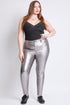 All that glitters is golden in our new Women's Plus Metallic Skinny Pants. These high-waisted pants are coated for a shimmering effect and feature a vibrant color, making them perfect for that Holiday Glam 'fit. With the stretch of leggings, this pant is comfortable for all-day (or all-night) wear and fits snug to your body for a flattering fit. Style with a tucked tank for your festive work event or a cropped top and heels for a holiday party - either way, you're going to shine!
