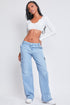 Kick-push your style boundaries and coast in these Women’s Low-Rise Straight Leg Cargo Skater Jeans. This low-waisted jean features a straight leg for a roomy silhouette that’s flattering without sacrificing mobility. Detailed with slant front pockets and flap button-close pockets at the back and side. Wear this trendy denim with a fitted baby tee and sneakers for a stylish look you’ll want to keep on heavy rotation!