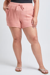 Party on the beach in style with these Women's Plus Double Gauze Shorts! Super soft and lightweight, they feature drawstring waistband, banded hem, and porkchop pockets, so you can kick back and relax in vacation-ready looks. Summer just got a whole lot cuter (and more comfy!).