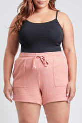 YMI Jeans Women's Plus Double Gauze Shorts With Banded Hem